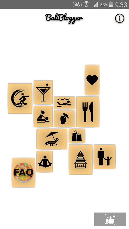 Descargar el BaliBlogger aplicación, usted tendrá acceso a la lista de todos los lugares interesantes e inusuales en Bali: atracciones, playas, casas de masaje, puntos de surf, centros de yoga, cafés y restaurantes, bares, clubs nocturnos y de playa. Así como de turismo y actividad ideas para familias con niños, supermercados y tiendas útiles, preguntas más frecuentes acerca de Bali. Todo nuevo y actual se añade regularmente a esta guía móvil en Bali, por lo que no se olvide de actualizar la aplicación.