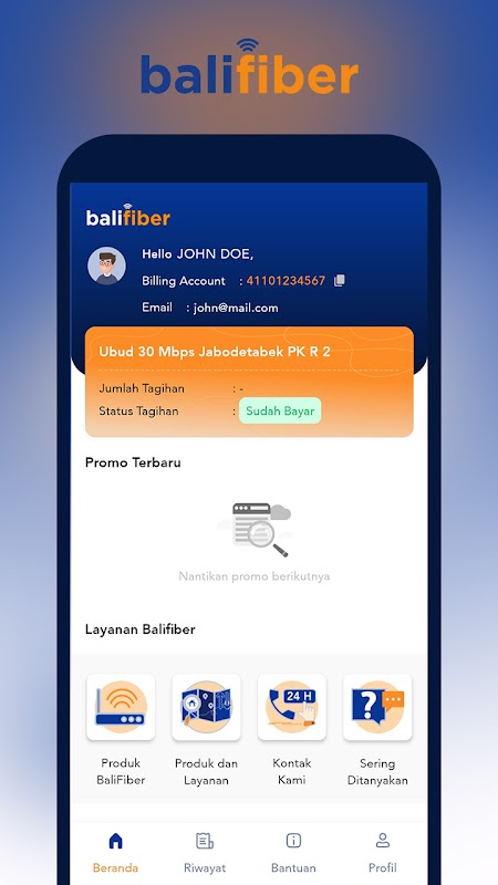 Balifiber ofrece varios paquetes de Internet con diferentes velocidades y precios según las necesidades del cliente. Para la conveniencia y la fluidez de Internet, Balifiber está listo para brindar el servicio posventa más rápido a través de Balifiber Apps.