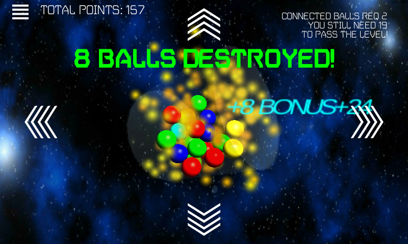 Tilt and turn transparent force field container in every direction to reorganize balls in order to align same color balls to touch each others. Exploding several connected balls of same color gives you more points.