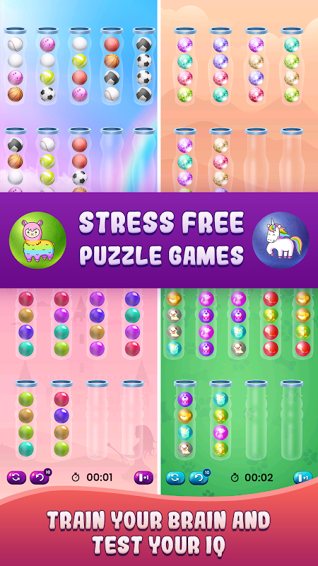Are you bored with the all old Water Color Sort Puzzles ? Want some newness in the sort puzzle games ? Look no further! We bring you the new Ball Sort Color Puzzle Game - A simple, relaxing and addictive sort puzzle game!