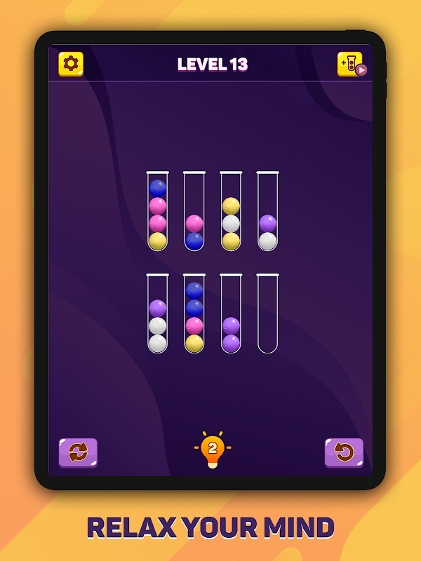 Ball Sort Puzzle - Color Sort es un juego de puzzle divertido y adictivo. ¡Es un juego divertido y relajante que entretiene y estimula tu cerebro! Intenta clasificar las bolas de colores en los tubos hasta que todas las bolas del mismo color permanezcan en el mismo tubo. Gran juego para pasar el tiempo y te hace pensar.