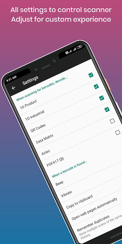 ✓ We developed a new feature that you will love! Now, you can choose the viewfinder color that you want from the settings tab to make the qr code more visible.