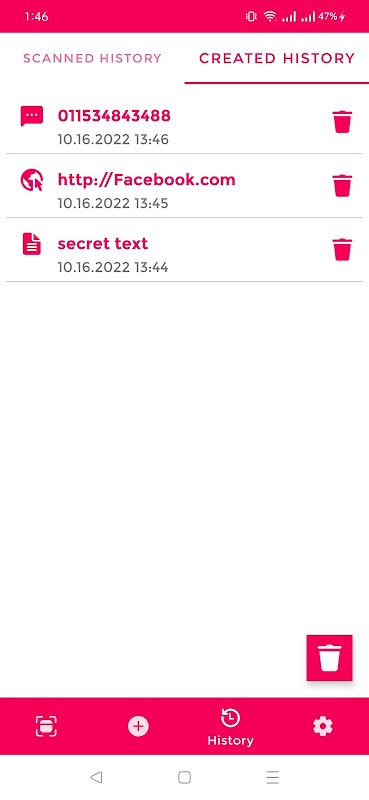 Esta aplicación de lector y creador de códigos de barras QR puede leer cualquier código de barras con alta precisión apuntando la cámara al código de barras y la información dentro del código de barras se puede guardar y copiar fácilmente, y la aplicación de lector y creador de códigos de barras puede leer los códigos previamente guardados en nuestro teléfono en forma de imágenes,