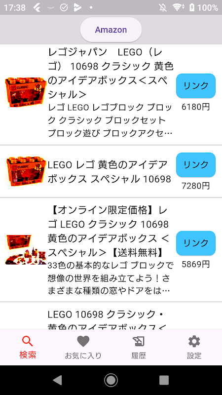 Puede abrir los resultados de búsqueda de Yahoo Shopping y las páginas de Amazon para productos cargados por código de barras o palabra clave desde la aplicación.