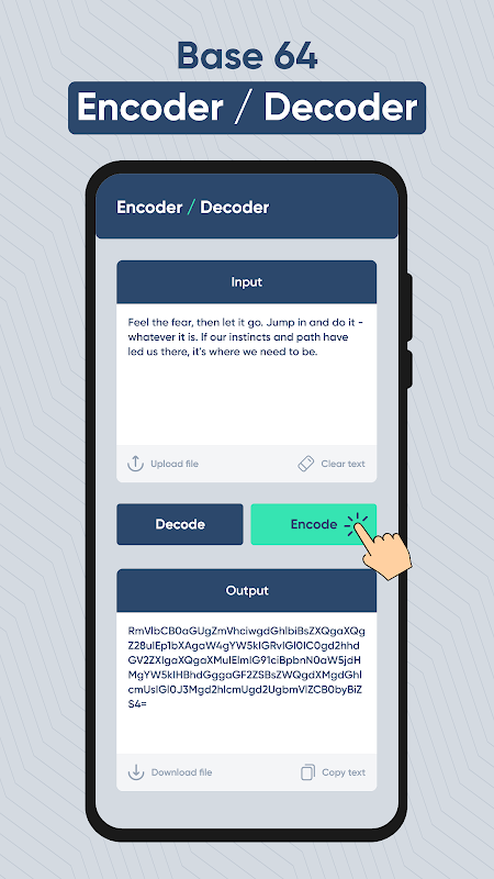 Base64 Encoder Decoder es una herramienta potente y versátil diseñada para que la codificación y decodificación de datos en formato Base64 sea rápida y sencilla. Ya sea que sea un desarrollador, un usuario preocupado por la seguridad o cualquier persona que necesite enviar o recibir información confidencial, esta aplicación es la solución perfecta para sus necesidades.