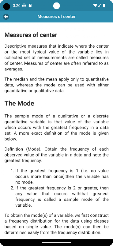 La estadística es el estudio de la recopilación, análisis, interpretación, presentación y organización de los datos. Al aplicar estadísticas a, por ejemplo, un problema científico, industrial o social, es convencional comenzar con una población estadística o un proceso de modelo estadístico para ser estudiado. Desde esta aplicación, podrás aprender estadísticas. Le ayudará a echar un vistazo rápido a las conferencias antes del examen. Conceptos básicos de las estadísticas para los estudiantes que quieren aprender estadísticas. Esta aplicación contiene estadísticas de notas rápidas.