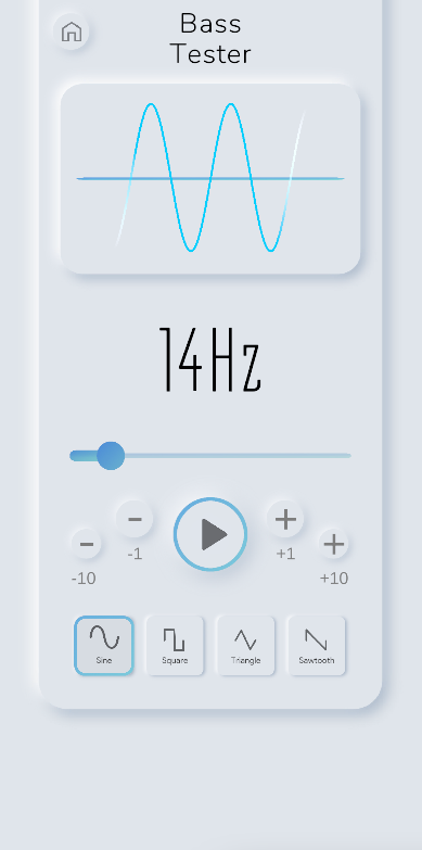 Presentamos la aplicación Bass Frequency Test, la herramienta definitiva para probar las capacidades de graves de sus altavoces y dispositivos. Nuestra aplicación le permite reproducir una amplia gama de frecuencias de graves súper bajas y averiguar qué tan bajos pueden reproducir sus altavoces. Con una interfaz intuitiva y fácil de usar, puede ajustar la frecuencia mediante un control deslizante y elegir entre varios tipos de frecuencia.