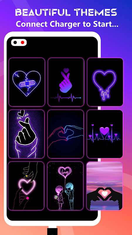 Elija entre diferentes animaciones de carga de batería o efectos de color neón. Puede usar estas animaciones de carga para configurarlas como fondo de pantalla de bloqueo de su teléfono mientras el cargador de su teléfono está conectado. Con la interfaz de usuario amigable, puede hacer que su pantalla se ilumine seleccionando la animación de efecto de color neón después de conectar el cargador. Dale a la pantalla de tu teléfono un toque diferente y un aspecto inteligente con una carga divertida. Obtenga atractivas pantallas animadas de carga de batería y gráficos animados geniales para una mejor carga. Todo esto también se puede personalizar con colores de texto y fondos de su elección.