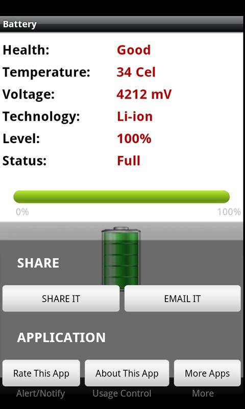 Battery Controller is an app which gives information about mobile battery health, status, temperature, technology, etc.