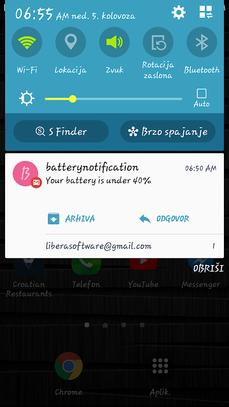 Keep better track of your battery charge. Get the notification if your battery goes below specific percentage.