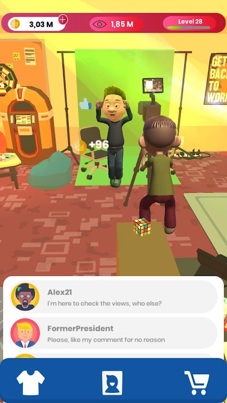 Improve your streamer actions, upgrade your studio, environment and character to gain more followers and money.