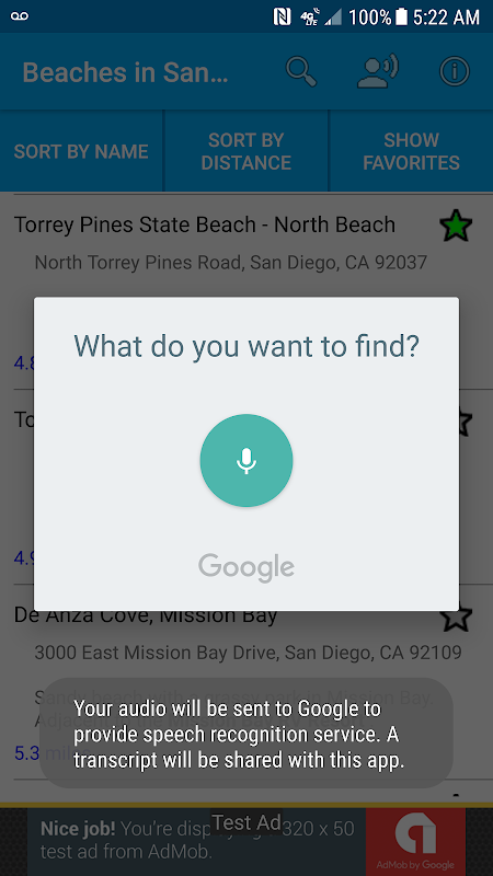 & # 8226; Habla en voz alta : la aplicación dice el nombre y la ubicación de la playa