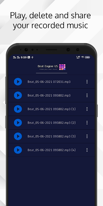 Beat Engine US is an amazing five instruments pads app that gives you the opportunity to make charming music, also with your voice and record it.