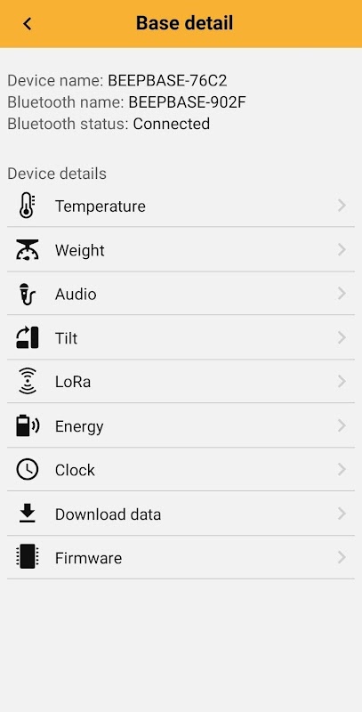 La base BEEP es un sistema de medición automático que se coloca debajo de la colmena. La báscula incorporada y el sensor de temperatura y el micrófono se encienden cada 15 minutos para medir los valores y enviar la información a la aplicación BEEP a través de LoRa. Por lo tanto, con la base BEEP siempre tendrá información sobre el estado de sus abejas. Esta aplicación se puede usar para calibrar sus sensores base BEEP y establecer la configuración de LoRa.