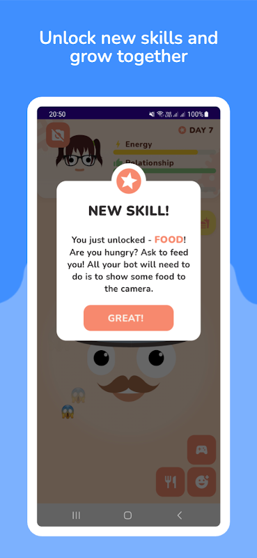 A medida que usted y su bot progresen juntos, descubrirán nuevas y emocionantes formas de interactuar y desarrollar un vínculo único. Sea testigo de la evolución de su robot desde una entidad digital básica hasta un compañero sofisticado que refleja su cuidado y cariño.