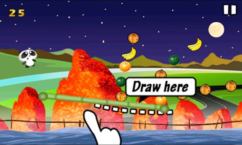 The panda likes jumping and air stunts. You must prevent panda from falling down and help panda by putting any bamboo bar at screen bottom. Collect fruits as much as