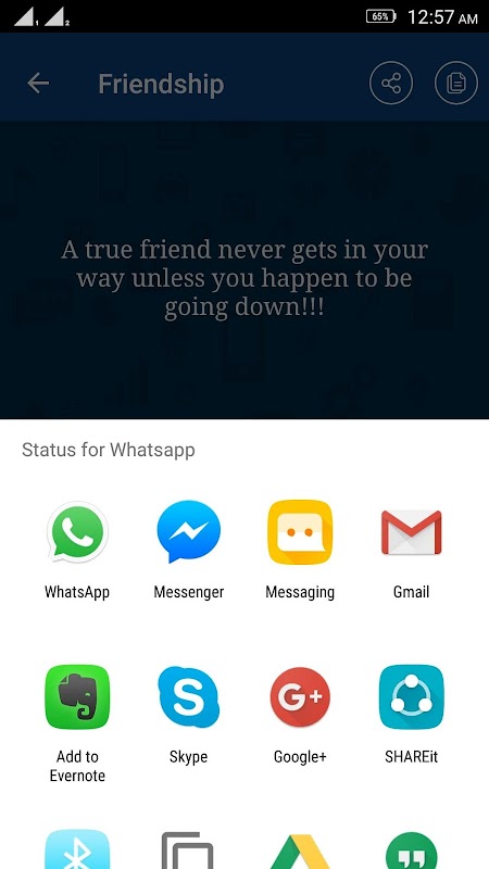Install this application and make yourself more sociable. With the use of this application you can daily interact with your friends on social sites like Whatsapp, Facebook, etc. This application has all kind of status that you can use daily. The application has large collection of status with many languages.