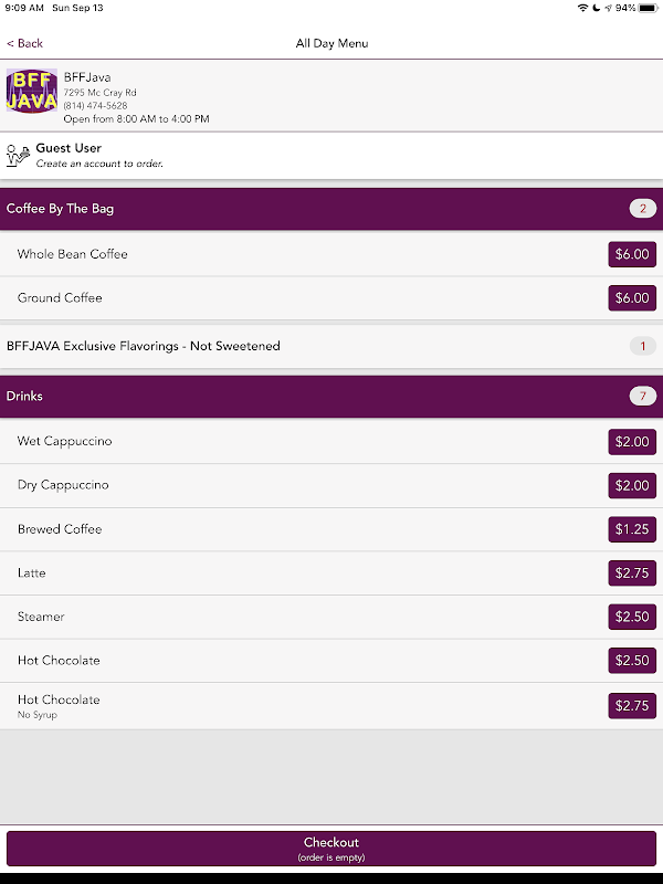 Pedido anticipado móvil de BFFJava (Borecky Fruit Farm)