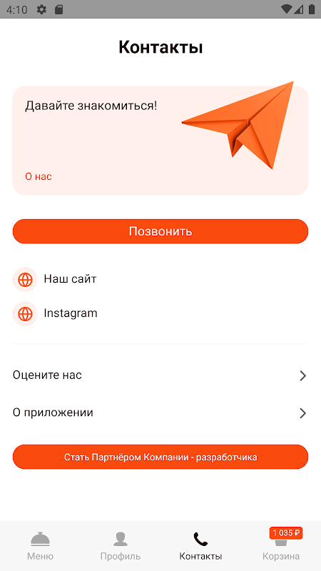 rentable programa de bonificación con devolución de dinero, menú siempre actualizado y colorido, fotos deliciosas, promociones y últimas noticias, comentarios y nuestros contactos.