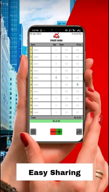 Factura con logotipo propio, lista de artículos o productos predefinidos, número de factura automático, fecha automática, uso compartido directo de Messenger.