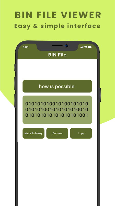 ¡Pero eso no es todo! Visor de archivos Bin también ofrece una variedad de características avanzadas para hacer que la administración de tus archivos .bin sea aún más fácil. Con la capacidad de guardar tu código de archivo .bin como PDF, puedes compartir y almacenar fácilmente tus datos binarios. La aplicación también te permite abrir archivos .bin tanto parciales como completos, brindándote la flexibilidad de ver solo los datos que necesitas.
