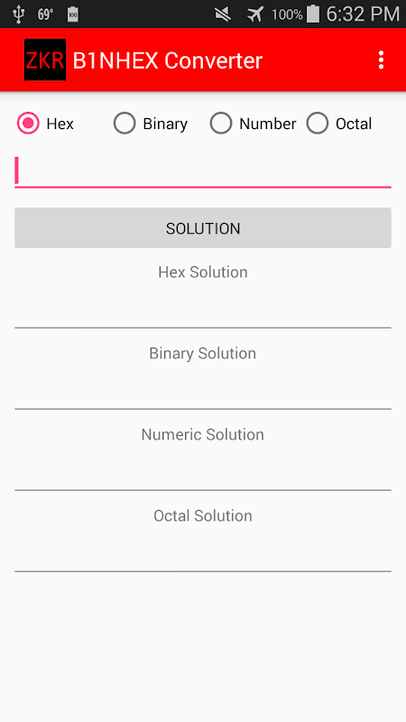 Esta aplicación convierte valores hexadecimales, binarios y numéricos.