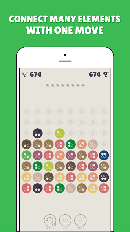 • Conecta dos puntos para crear el punto con el número más alto y gana puntos.