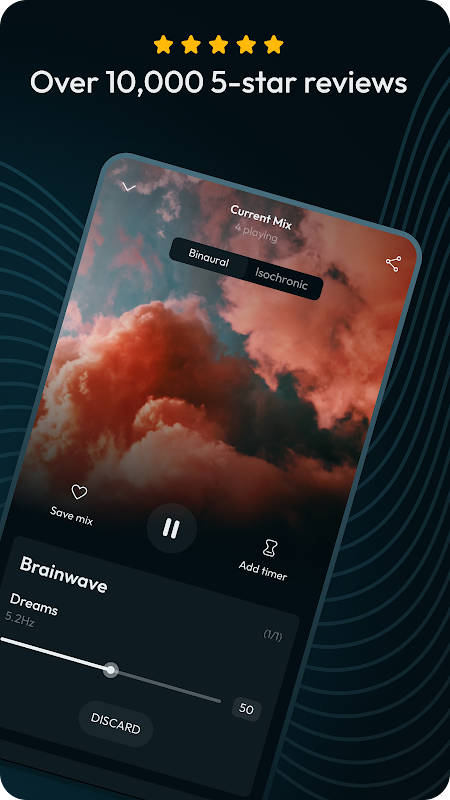 Si buscas mejorar tu descanso, relajación y concentración, ¡nuestra aplicación de ondas cerebrales puede ayudarte! Únase a más de 400.000 usuarios que se han beneficiado de los efectos refrescantes de los ritmos binaurales. Puede comenzar a sentirse más relajado y más concentrado, con menos estrés y ansiedad, en sólo unos minutos.