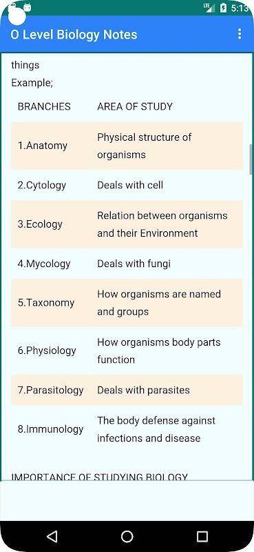 Aplicación de notas de biología de nivel O para estudiantes de nivel ordinario que cubre desde el formulario 1 hasta el s4