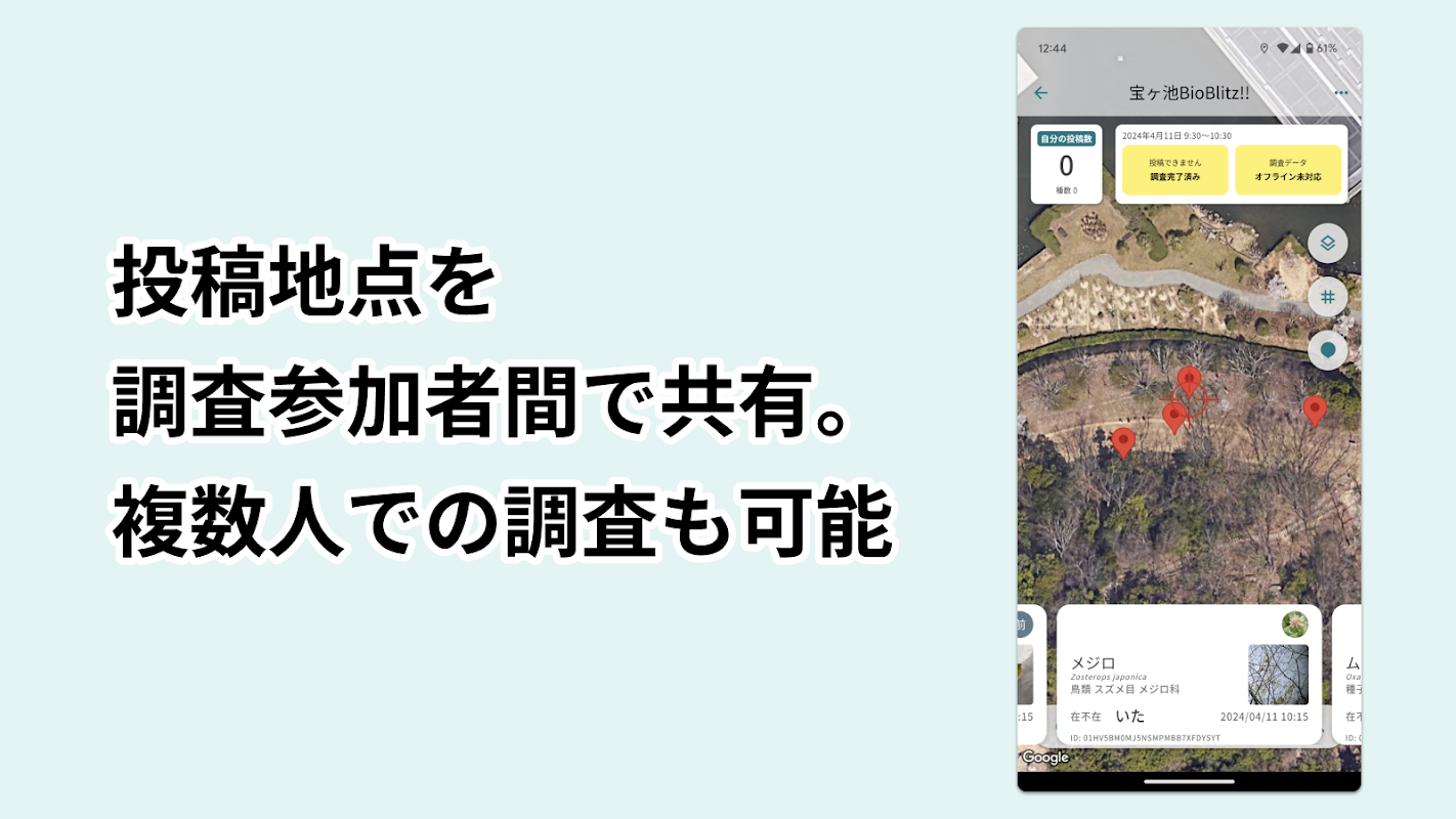 Esta aplicación es "BiomeSurvey", una aplicación especializada en encuestas biológicas. La aplicación de colección de criaturas "Biome", que te permite usar misiones, IA de reconocimiento de nombres, enciclopedia de criaturas, mapas de criaturas, etc., no es esta aplicación.