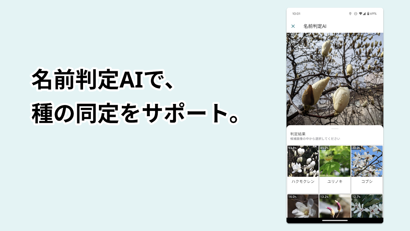 Además, como estamos equipados con nuestra exclusiva tecnología de inteligencia artificial, es posible averiguar fácilmente el nombre de la especie de un organismo con solo tomar una fotografía.