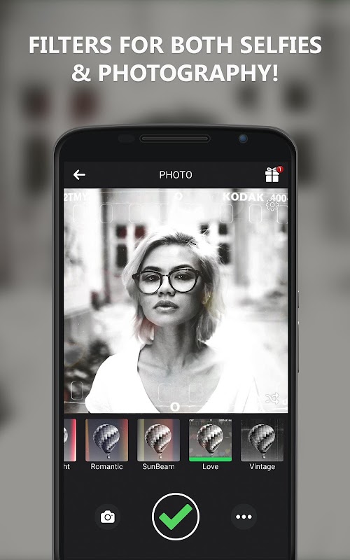 Todos tenemos algunas fotos hermosas que se verían mejor en blanco y negro. Los filtros para fotos en Camara en Blanco y Negro harán edición de fotos parece muy divertido. Una combinación de blanco y negro con algunos colores brillantes es muy eficaz. Selecciona algunos detalles amarillos, rojos o azules en tus fotos y dejalos asi. Cuando tus amigos vean esas pequeñas obras de maestra, ¡cuentales una historia acerca de estos filtros de camara que pueden hacer a cada persona un maestro en hacer fotos! No es necesario ocultar un secreto. ¡Hay suficientes filtros para fotos para todos! ¡El mejor editor de foto blanco y negro y la mejor camara en blanco y negro!