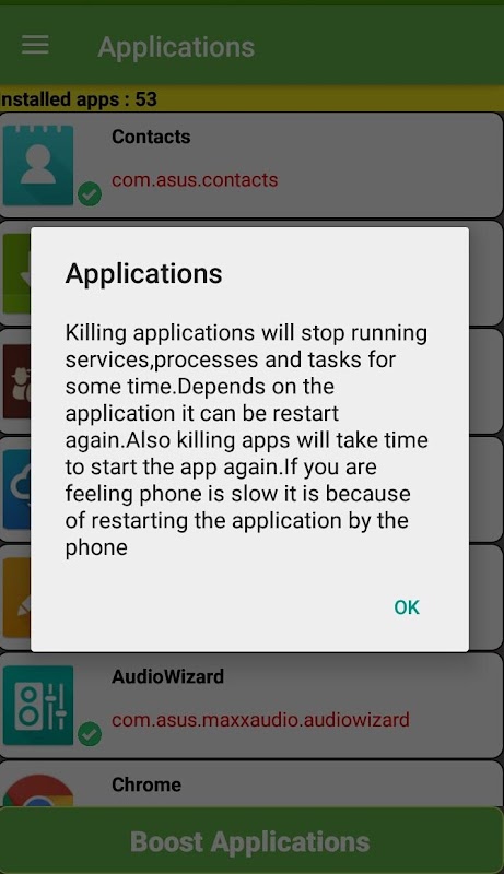 Esta aplicación le permite acelerar su teléfono cuando se ejecuta lentamente debido a la gran cantidad de aplicaciones que se ejecutan en segundo plano.