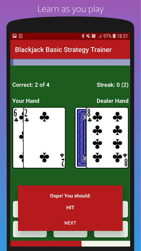La aplicación Blackjack Basic Strategy Trainer es la forma más rápida de aprender la estrategia básica para el blackjack.