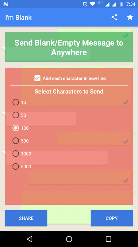 Enviar blanco / caracteres vacíos Mensajes para cualquier aplicación.