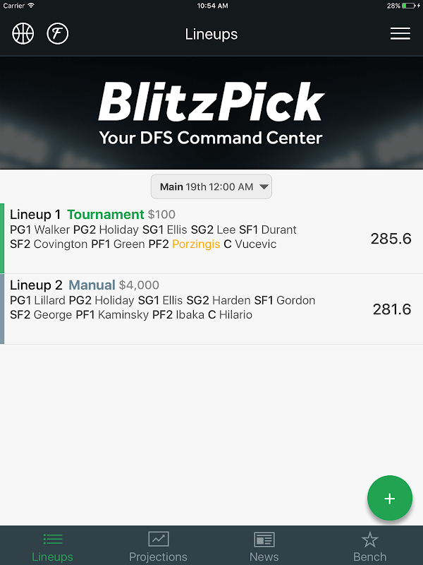 BlitzPick is the most innovative tool in the roto world, and it is the first daily fantasy sports lineup optimizer created by Vegas sports professionals. Roto enthusiasts can now create worry-free lineups for NFL, NBA, and MLB events. Set your roster and, if there are any changes in a player’s status, BlitzPick not only alerts you but also generates the strongest replacement - critical for winning daily fantasy basketball contests. Additionally, users can follow daily fantasy sports news, get contest specific lineups, and research historical performance all for free, within one app.