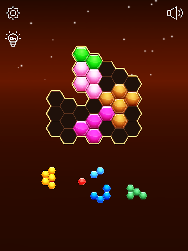 Block Hexa Puzzle es un juego de rompecabezas simple pero muy relajante de jugar. Al llenar todas las celdas vacías del tablero, completarás el juego.