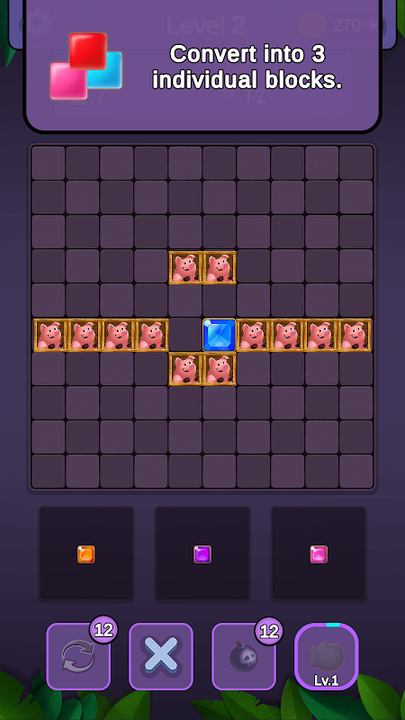 2. Rellena los bloques en una línea vertical u horizontal para eliminarlos.