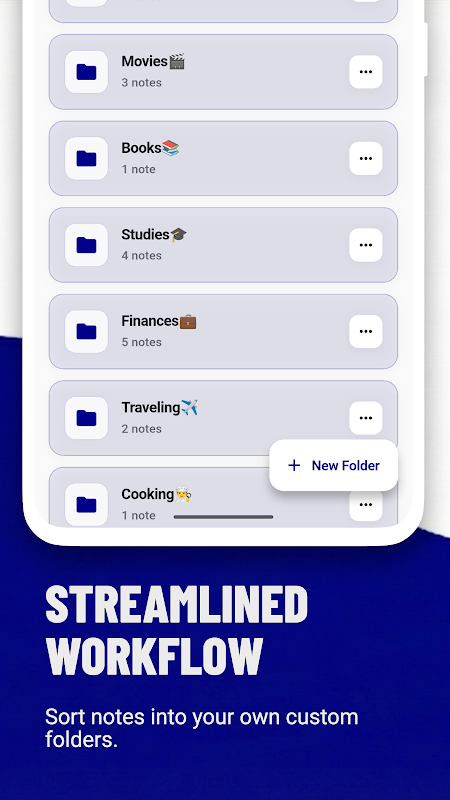 Organiza las notas en carpetas para mantener los proyectos y temas agrupados.