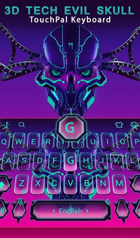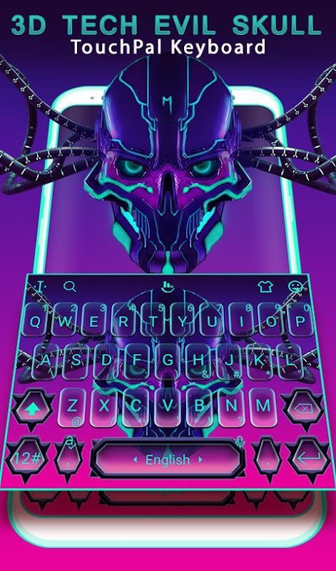 Nuevo tema de teclado Blue Tech 3D Evil Skull gratis para TouchPal Emoji Keyboard.