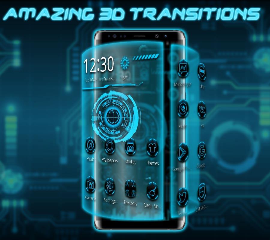 Amazing Neon Blue Tech Launcher with thousands of free 3D themes & wallpapers.