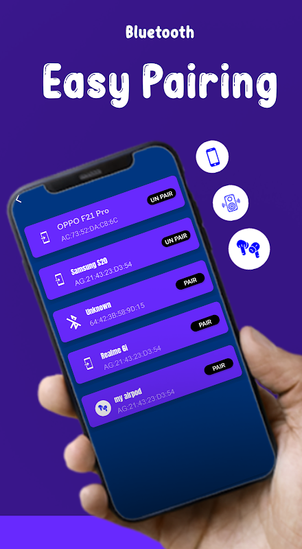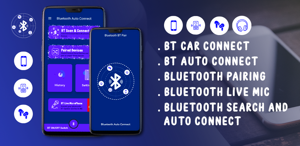Bluetooth auto connect par BT encontrar cualquier tipo de dispositivos Android Bluetooth myairpods, altavoces de audio, auriculares, altavoces de coche, teléfonos móviles, y mucho más que necesita. Bluetooth auto connect par BT y escáner BT y búsqueda disponible gratuitamente en la tienda de juegos