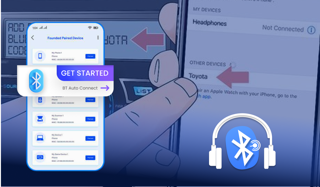 El dispositivo de emparejamiento Bluetooth detecta auto o conecta Bluetooth