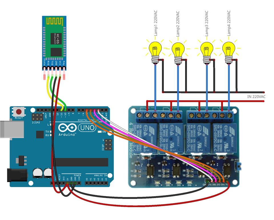Arduino Bluetooth Relay 4CH App is android application which is used to control 4 channel relay module via Bluetooth with Bluetooth serial communication module support HC-05, HC-06, or HC-07, Using Arduino or AVR