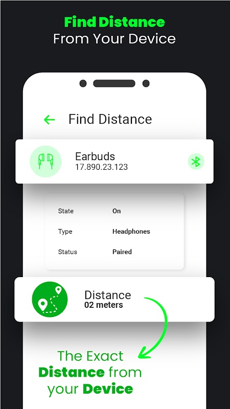 El buscador de audifonos bluetooth actualiza la distancia entre usted y el dispositivo perdido con cada paso que dé en cualquier dirección utilizando el encontrar auriculares bluetooth en su dispositivo. Cuanto más fuerte se vuelve la señal a medida que te acercas al dispositivo Bluetooth perdido con este buscador bluetooth scanner. Puede ver la distancia según el app para encontrar mis airpods.