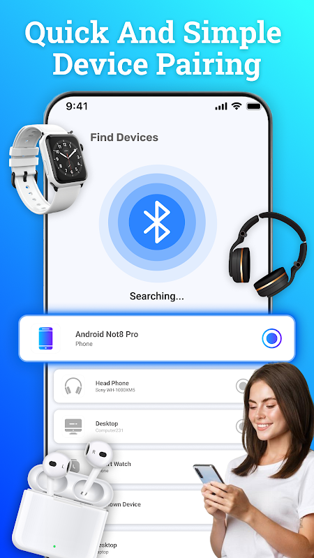 Disfruta de conexiones Bluetooth sin complicaciones con Conexión Automática de Emparejamiento Bluetooth: tu herramienta todo en uno para escanear, emparejar y reconectar automáticamente dispositivos con Bluetooth. Ya sea que uses AirPods, smartwatches, sistemas de audio para auto o altavoces Bluetooth, esta app garantiza un emparejamiento rápido y confiable en todo momento.