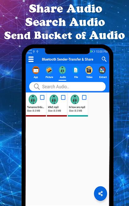 Bluetooth Sender CloneIT Bluetooth Transfer Easy Connect Share is one of the best app for transfer and share any data any time with out any cable .Bluetooth App transfer is amazing app for transfer app easily .And the best part of Bluetooth Sender - Transfer & Share and flexible feature that you can select multiple Applications, multiple audios, multiple videos, multiple pictures , multiple file and all sort of files, all together and share or transfer it, and There is no restriction on what to 🔗 share or transfer totally free of cost .