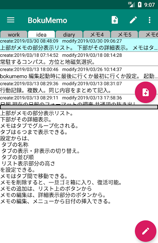 BokuMemo es una aplicación memo creada para Android. La nota se puede agrupar por pestañas y se puede obtener una vista previa del contenido de la nota seleccionada.