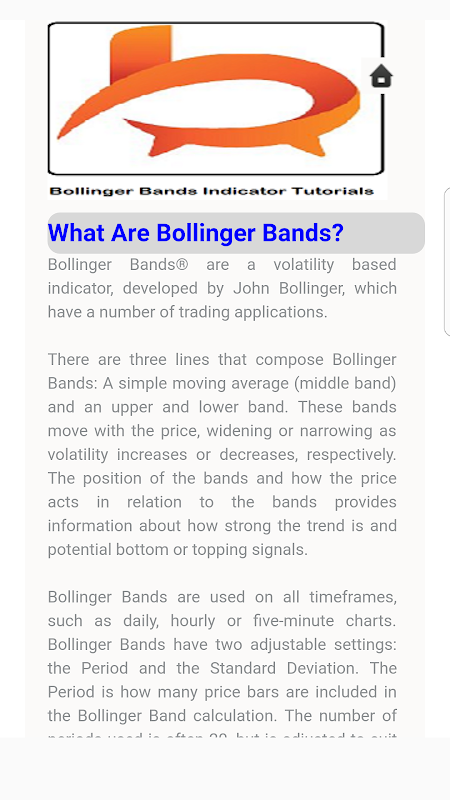 -> Bollinger Bands Indicator Tutorials Offline App come with complete comprehensive and responsive layout.
