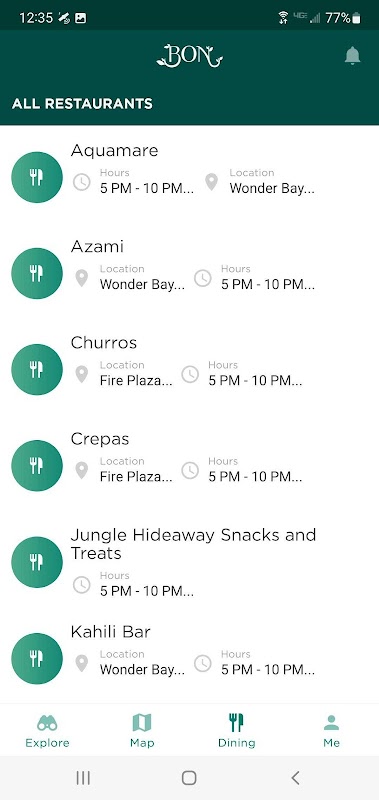 • Descubra atracciones: explore las increíbles atracciones y experiencias exclusivas de BON, con detalles y horarios de atención. Desde Vista Wheel hasta Floresta Drop, disfrute de atracciones innovadoras y aventuras inmersivas.